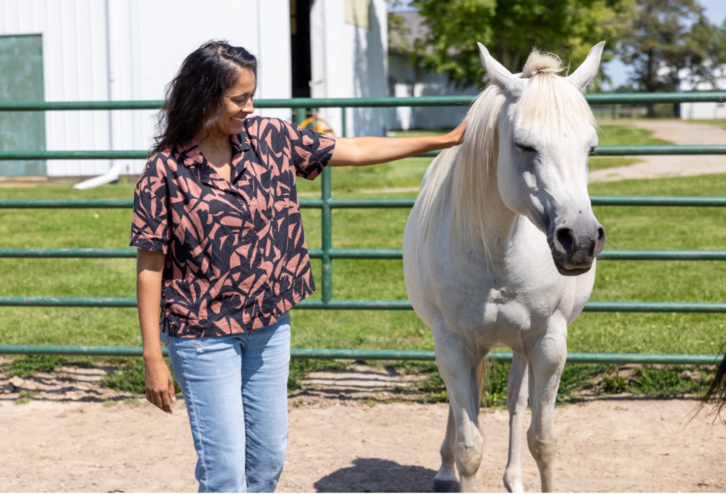 Key values at Michigan State University’s University Health and Wellbeing include collaboration and compassion. Through a collaboration with MSU’s Animal Science Department and the MSU Horse Teaching and Research Center, UHW can offer students a transformative mental health experience through Stable Minds: Healing with Horses, a unique group counseling program that combines mindfulness practices with equine therapy.