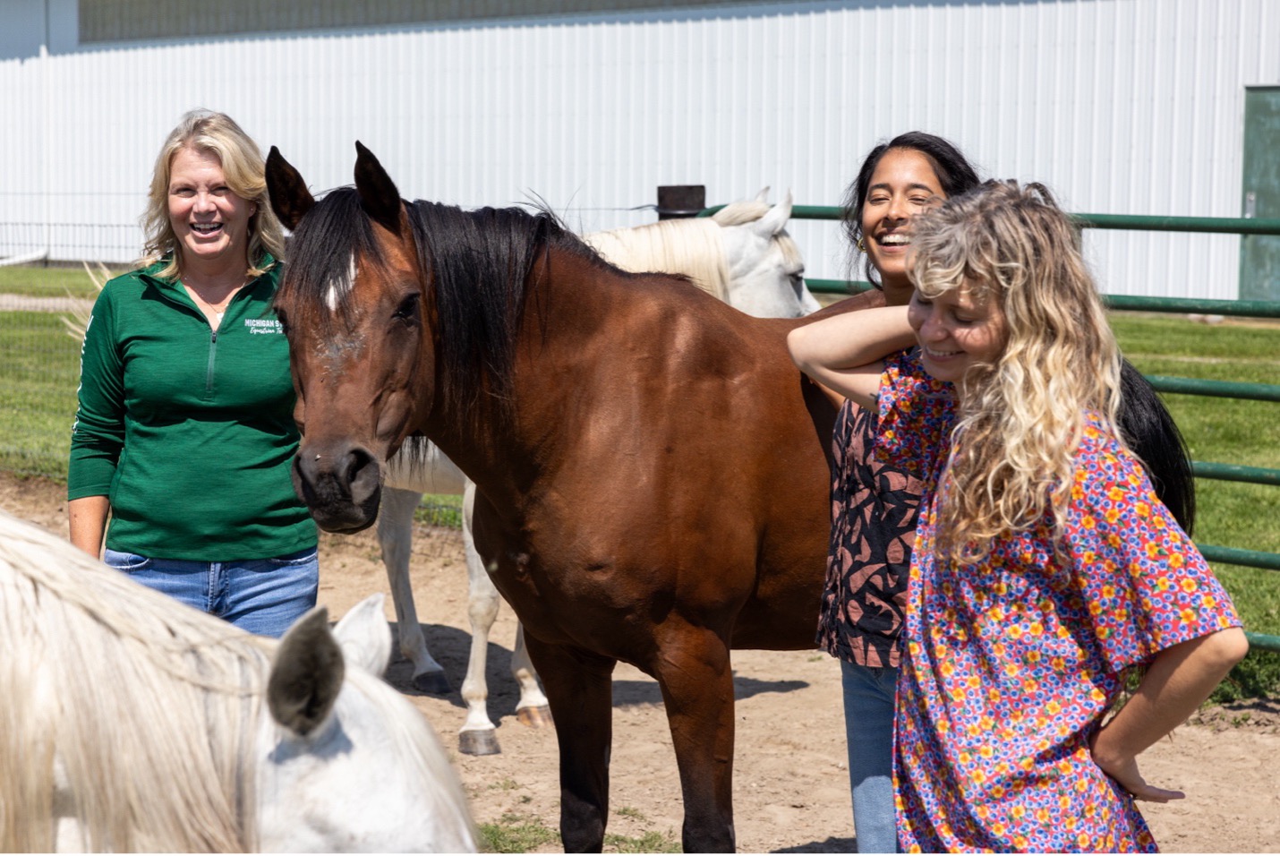 Developed by UHW unit Counseling and Psychological Services (CAPS) Counselor Lauren Enty and CAPS Director Dr. Swapna Hingwe, in collaboration with Dr. Karen Waite from MSU’s Animal Science Department, the program provides students with the opportunity to engage directly with horses, fostering emotional growth and mental wellbeing. CAPS Embedded Counselor, Christian Gibson also assists with running the program.